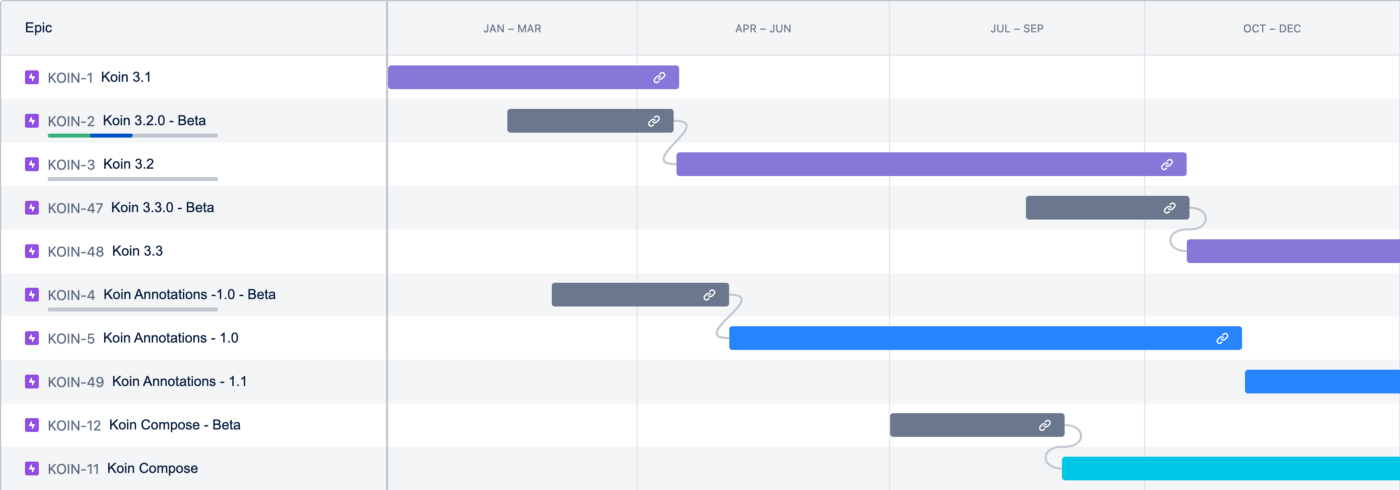 The first big thing for the Koin project is organizing release cycles to establish a clear vision on versions deployment, and to help you anticipate updates and new features. We need a clear version tracking: Major.Minor.Patch